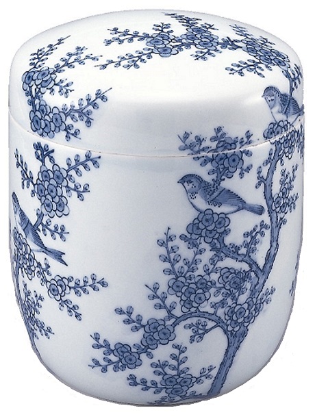 陶器 骨壺【染付手描】花鳥 6寸