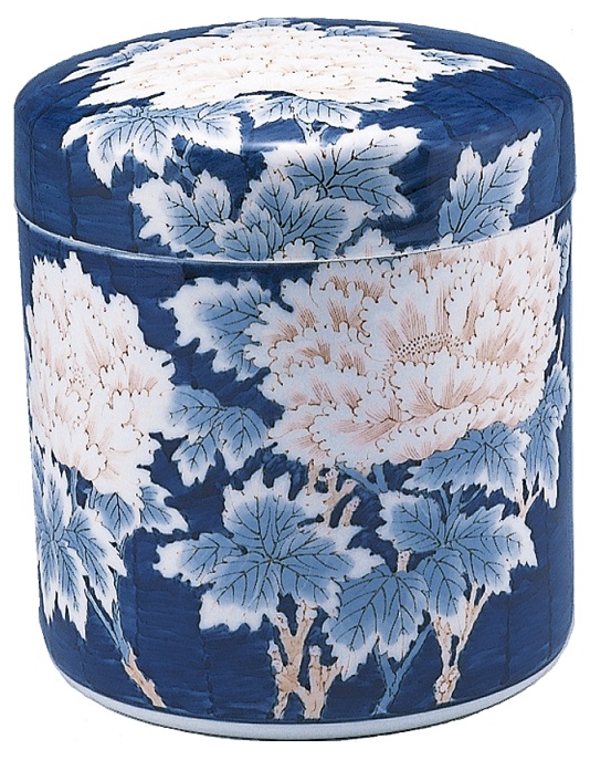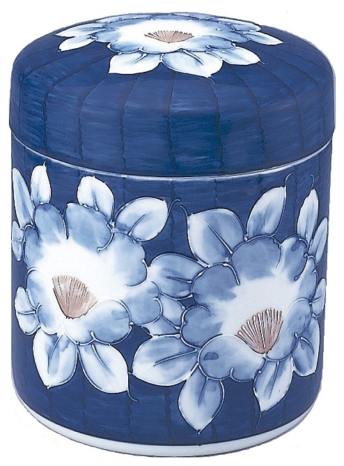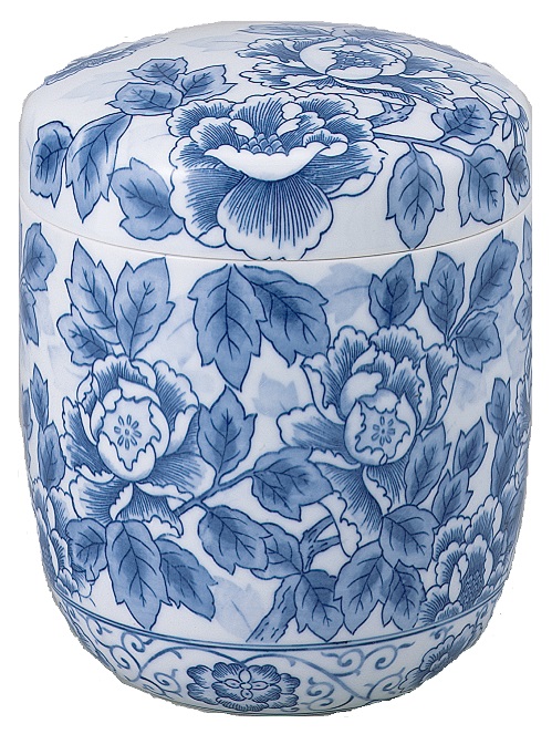 陶器 骨壺【染付手描 牡丹】7寸