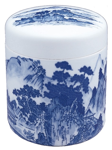 陶器 骨壺【染付手描】山水 6寸