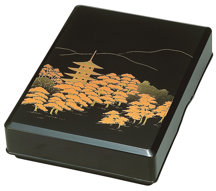 手提げ三段運び箱【樹脂製】黒 蒔絵鉄仙