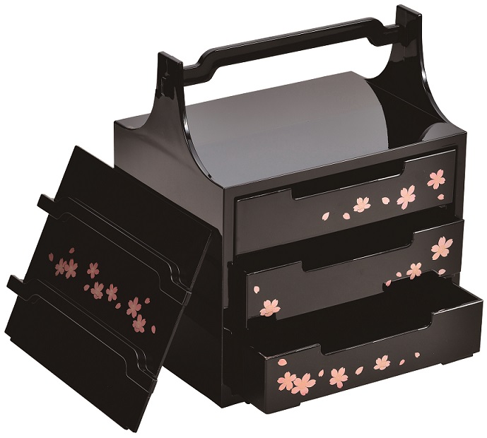 手提げ三段運び箱【樹脂製】黒 蒔絵桜