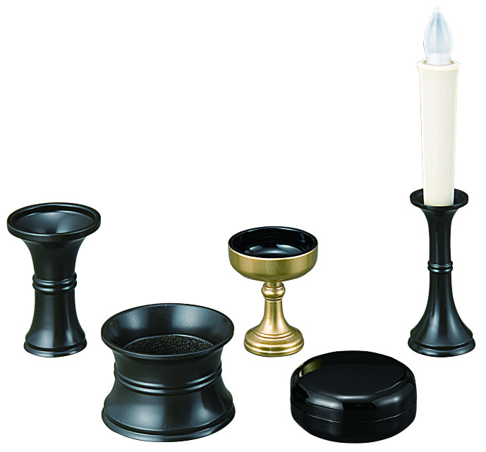 三具足一段・仏器一本・香合一個・安全ろうそく一本のセットです。