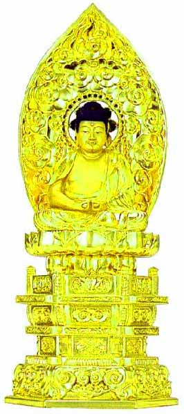 仏像に切金風の加飾をしています。