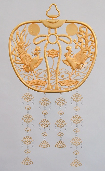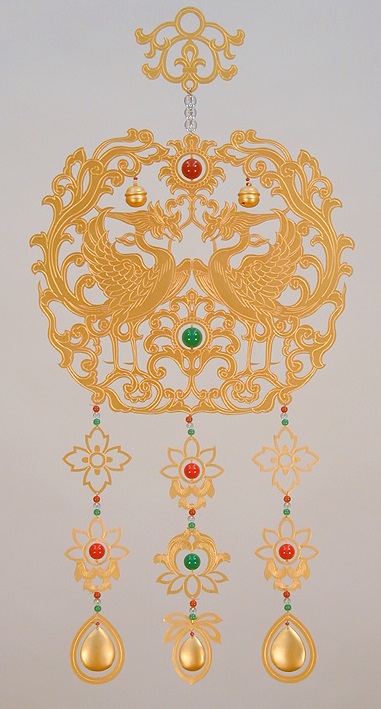華鬘【正倉院 鳳凰型】銅製 本金消メッキ 04寸(寺院用)