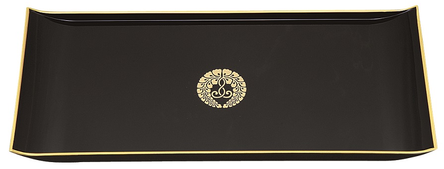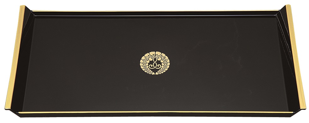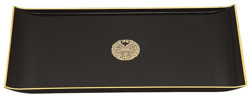 焼香盆【樹脂製】黒フチ金 大(下り藤紋入)
