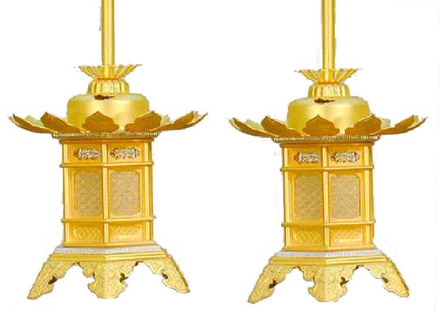 神前灯篭【組胴 丁足・パイプ】消金メッキ 1寸5分(一対)(在家用)21’