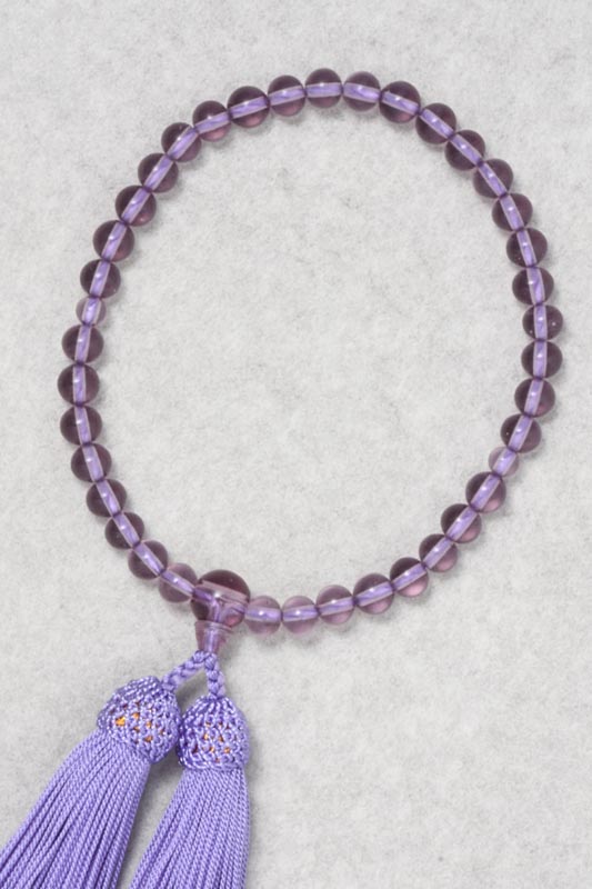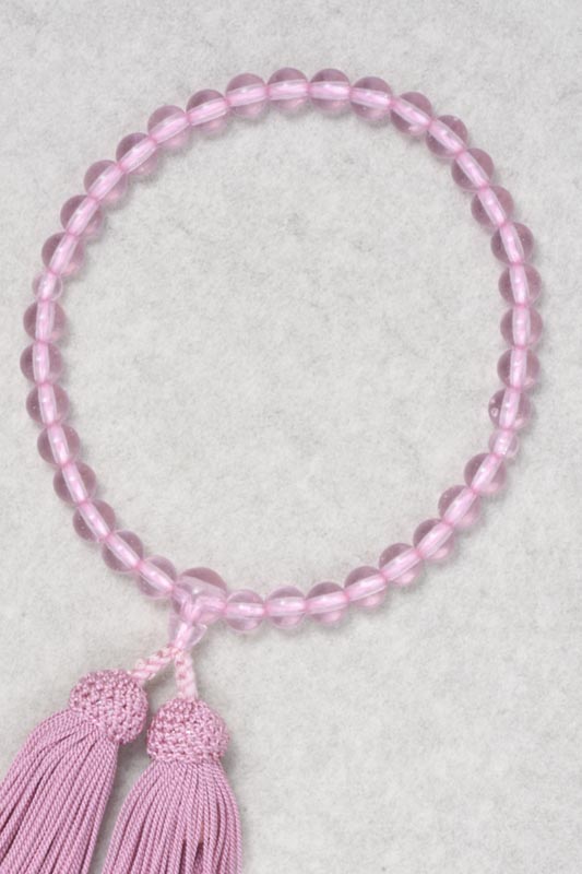 白露石の丸玉と水晶切子を交互につなぎました。銀白秋房です。