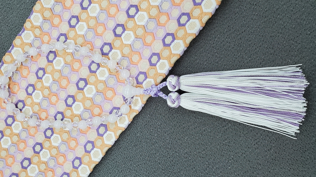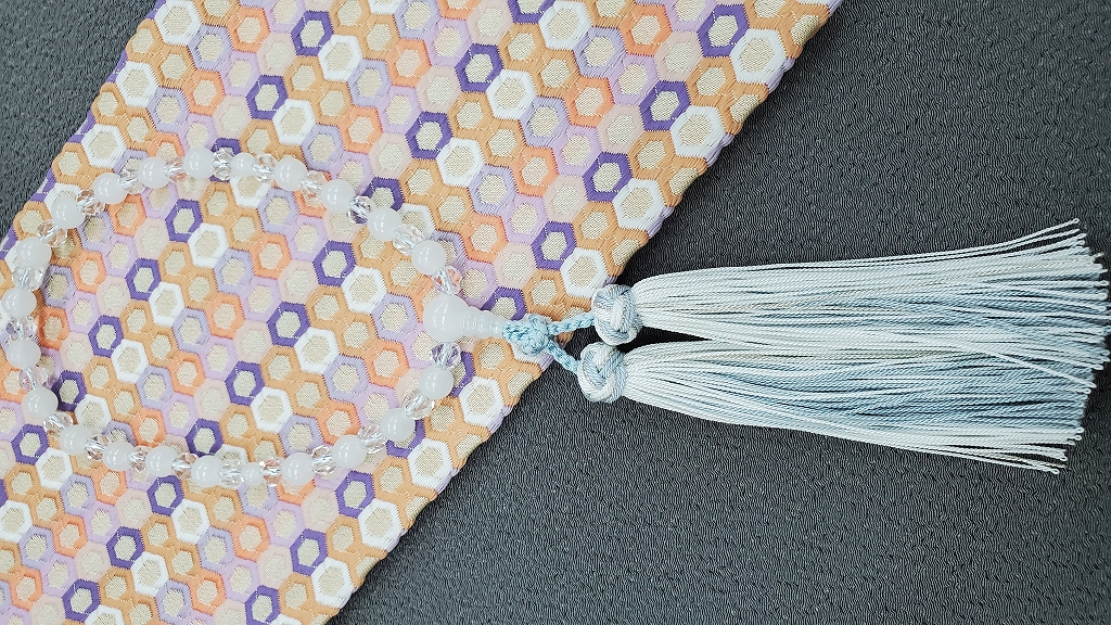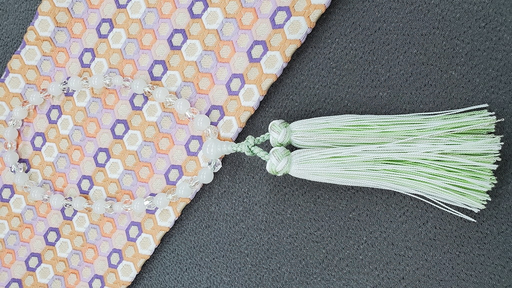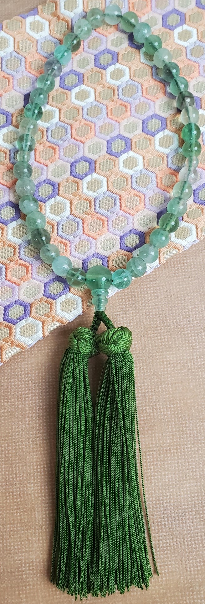 緑蛍石の丸玉で共仕立です。花かがり房です。