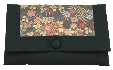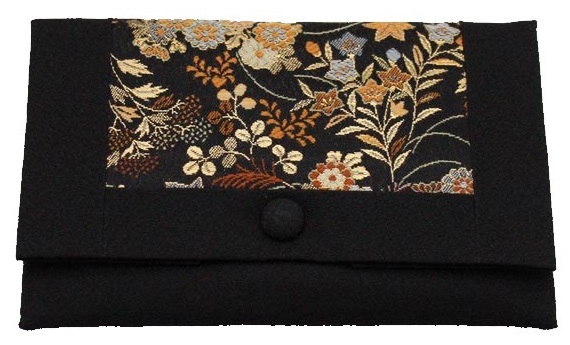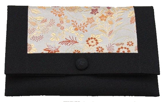 数珠袋 二つ折【染織金襴】秋草紋様 黒地