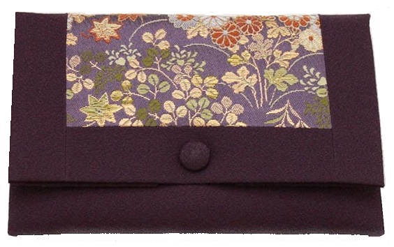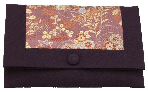 数珠袋 二つ折【染織金襴】秋草紋様 にせ紫色