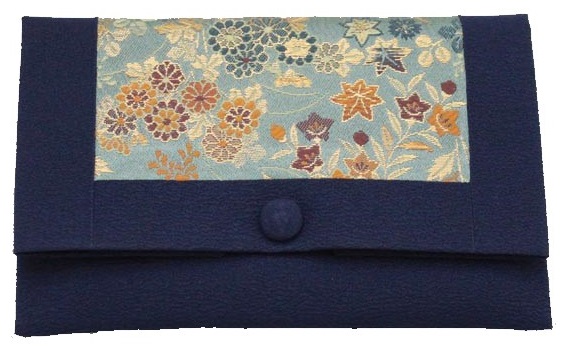 数珠袋 二つ折【染織金襴】秋草紋様 紺色