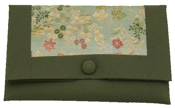 数珠袋 二つ折【染織金襴】秋草紋様 抹茶色