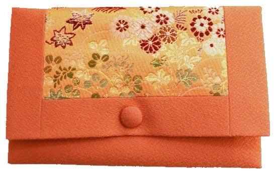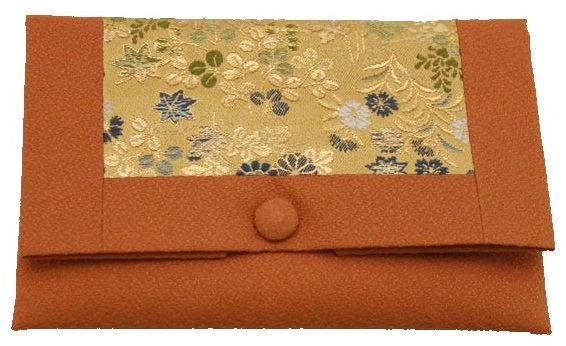 数珠袋 二つ折【染織金襴】秋草紋様 レンガ色