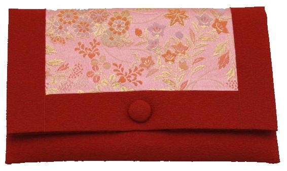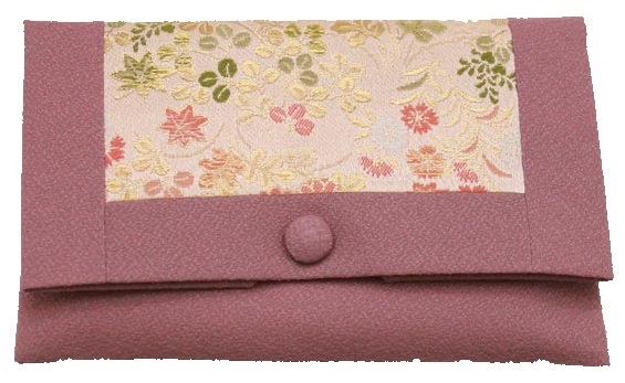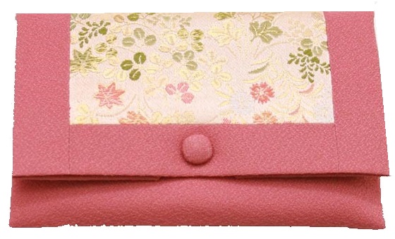 数珠袋 二つ折【染織金襴】秋草紋様 なでしこ色
