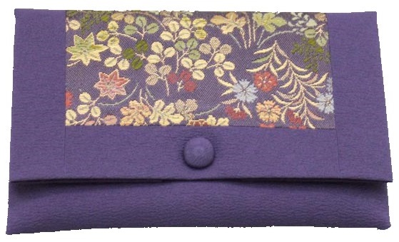 数珠袋 二つ折【染織金襴】秋草紋様 紫