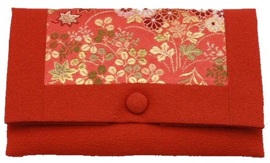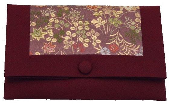 数珠袋 二つ折【染織金襴】秋草紋様 エンジ色