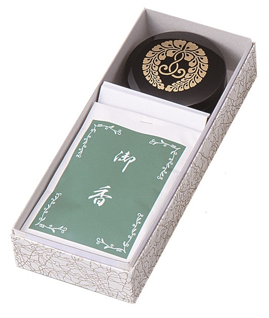 切立香合【木質製】黒 下り藤 2寸5分(内梨地・紫雲香セット付)
