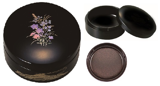 切立香合【木質製】黒 蒔絵桔梗 2寸5分(内梨地)