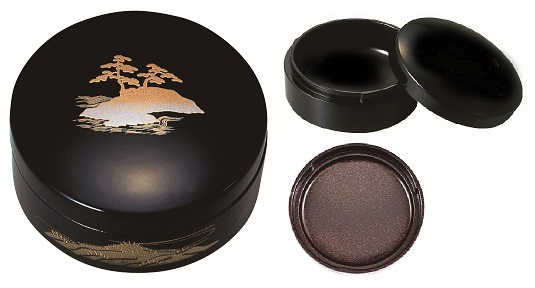 切立香合【木質製】黒 蒔絵山水 2寸5分(内梨地)