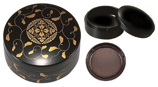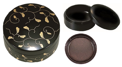 切立香合【木質製】黒 蒔絵唐草 両山紋 2寸5分(内梨地)