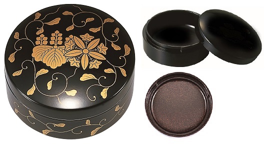 切立香合【木質製】黒 蒔絵唐草 八ツ藤 2寸5分(内梨地)