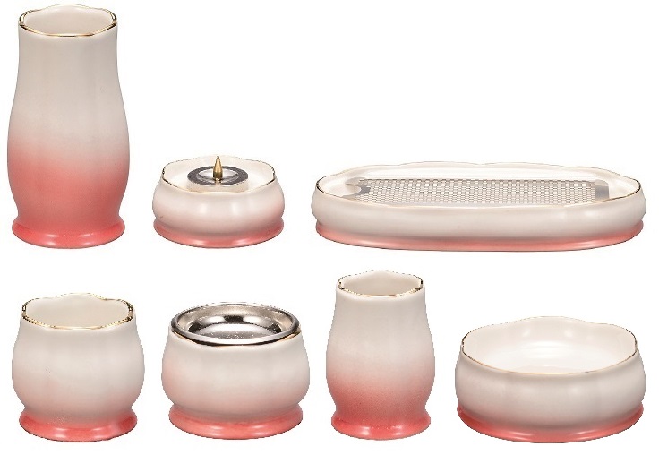 陶器 7点セット【清水焼 花結晶Ⅱ】淡桃