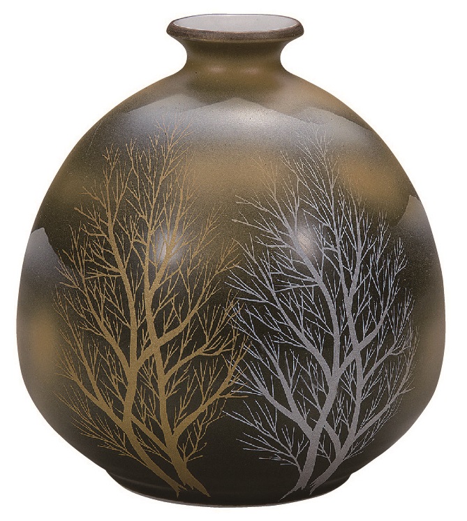 陶器 花瓶【九谷焼 咲良】金雲 木立 4.2号