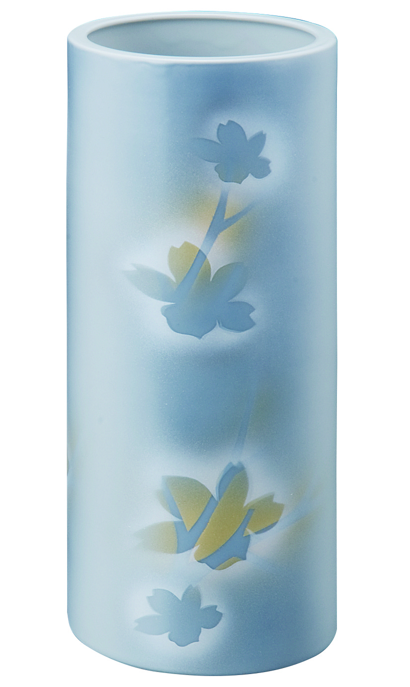 陶器 花瓶【信楽焼 心春】白刷毛目 ブルー 8号