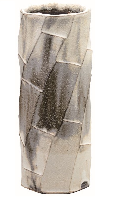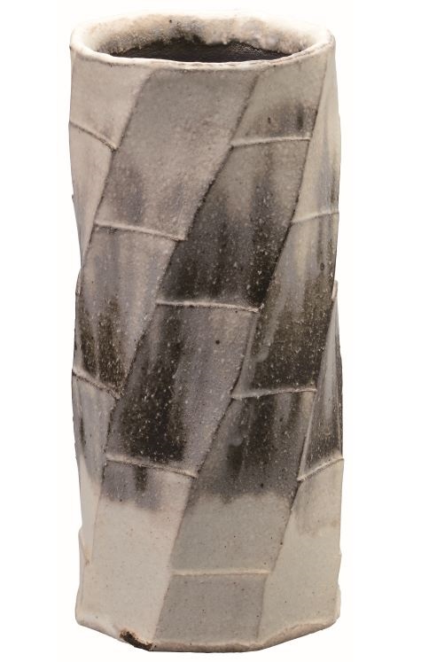 陶器 花瓶【信楽焼 心春】灰釉 白いっちん 8号