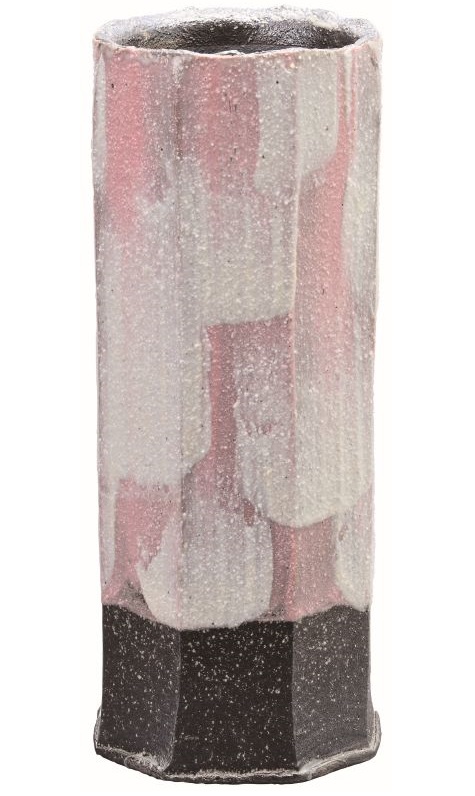 陶器 花瓶【信楽焼 心春】白刷毛目 ピンク 8号