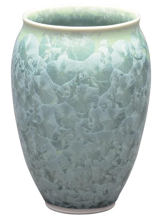 陶器 花瓶【清水焼 花結晶】肩丸花生 緑 小