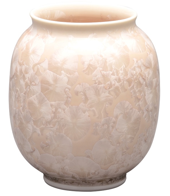 陶器 花瓶【清水焼 花結晶】肩丸花生 茶 小