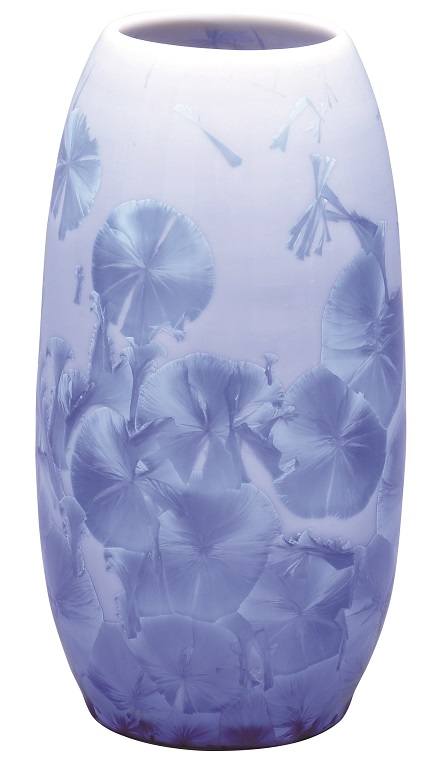 陶器 花瓶【清水焼 花結晶】縦長花生 青 小