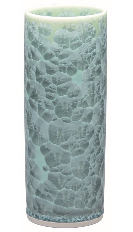 陶器 花瓶【清水焼 花結晶】切立型花生 青 中