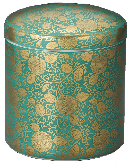 陶器 骨壺【有田焼 緑地金襴】7寸
