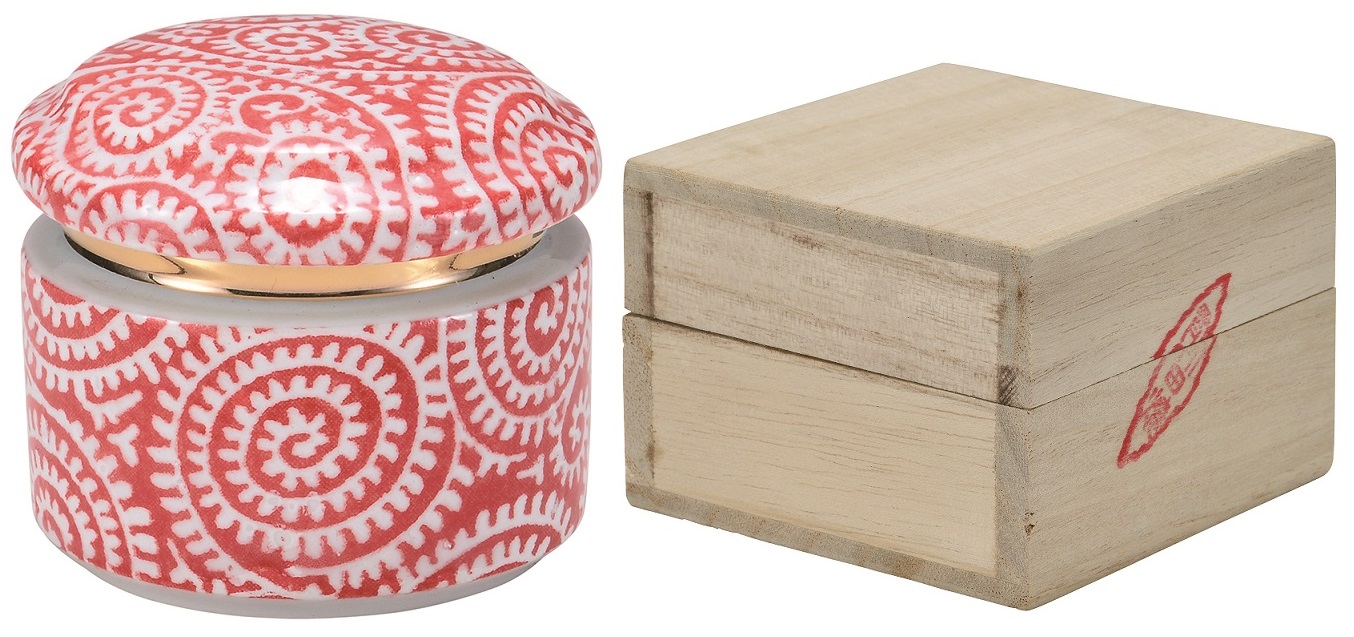 陶器 小型骨壺【有田焼 花音】小18 たこ唐草 赤