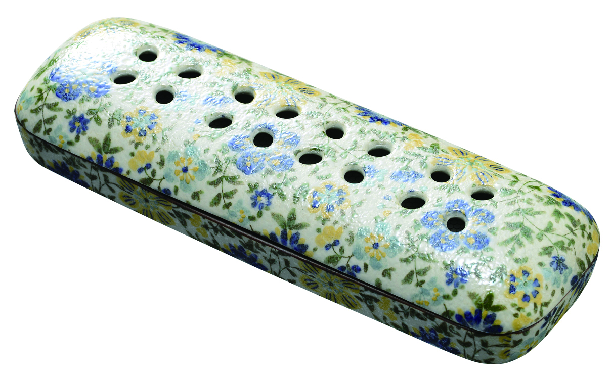 陶器 寝かせる線香皿【有田焼 花摘】大 色唐草(網入)