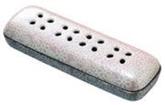 陶器 寝かせる線香皿【有田焼 花摘】大 瑠璃(網入)