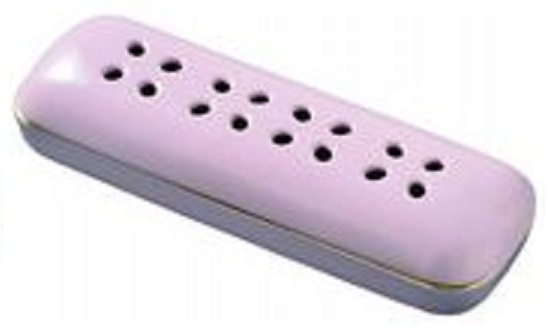 陶器 寝かせる線香皿【有田焼 花摘】大 桃染(網入)