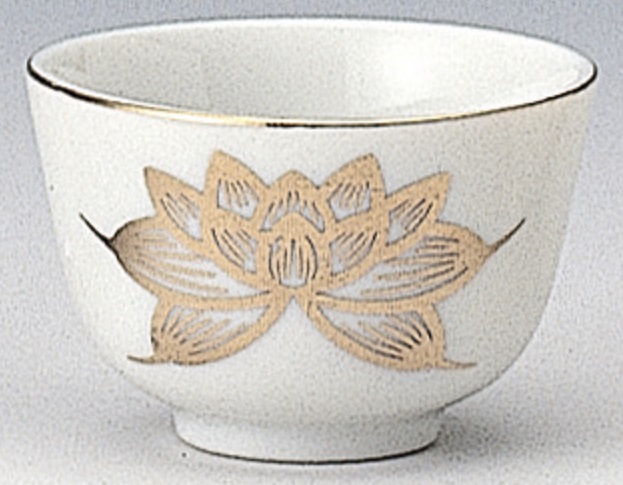 白地に蓮の花の絵が描いてあります。
