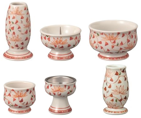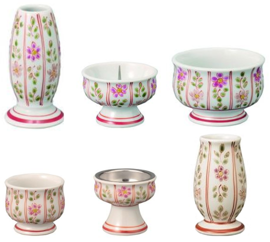 陶器 六具足【九谷焼 はなやぎ】小花 2寸5分