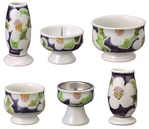 陶器 六具足【九谷焼 はなやぎ】紫椿 2寸5分