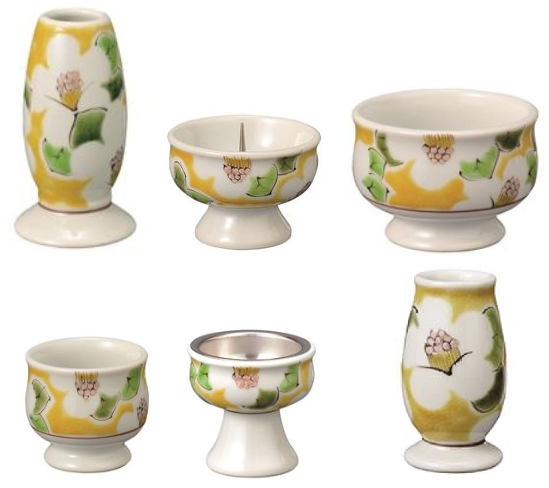 陶器 六具足【九谷焼 はなやぎ】黄色椿 2寸5分